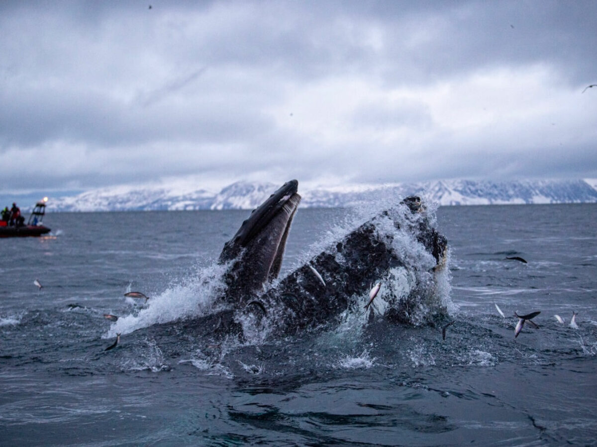 Dazu muss man wissen, dass die Wale mit den Heringsschwärmen mitziehen. Dort, wo viele Heringe sind, da sind dann auch viele Orcas und auch Buckelwale.